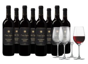 Weinpaket Casa Safra Black Label Gran Reserva 8 Flaschen + 4 Schott Zwiesel Gläser für 43,16€