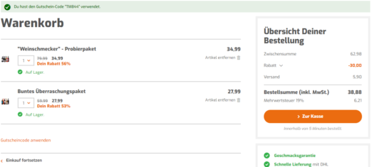 Weinliebhaber aufgepasst! Bei Weinvorteil erhaltet ihr nun als Neukunde bis einschließlich 30. November einen satten Rabatt in Höhe von 30€ ab einem Mindestbestellwert von 60€. Im besten Fall bedeutet das satte 50% Ersparnis! 😉