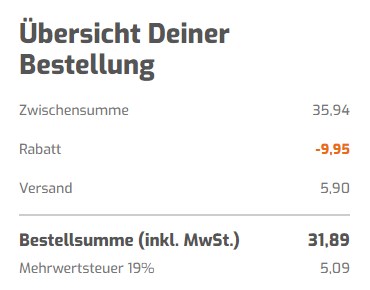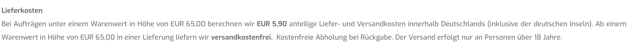 Die Versandkosten betragen 5,95€ entfallen jedoch ab 130€ Bestellwert. 🙂