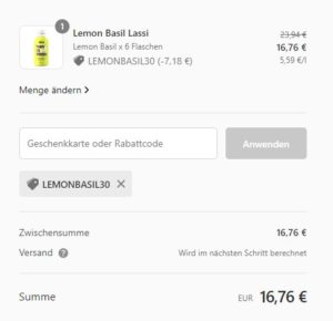 Nutzt den Gutschein LEMONBASIL30 und schon kommt ihr auf den Preis