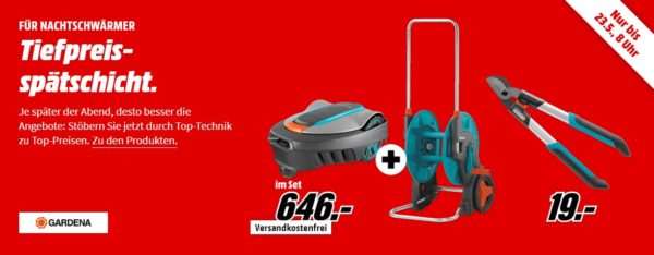 In der heutigen Tiefpreisspätschicht bei MediaMarkt erhaltet ihr verschiedene Produkte aus dem Hause Gardena zu attraktiven Aktionspreisen: