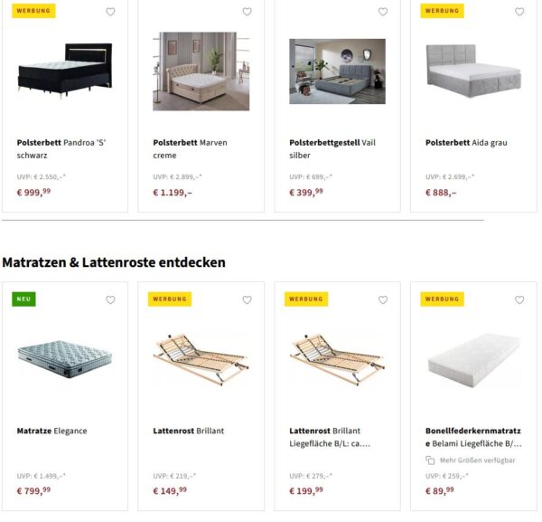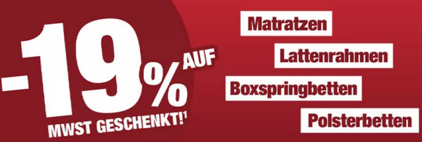 19% MwSt. Rabatt auf Boxspring- & Polsterbetten, Matratzen und Lattenrahmen bei POCO