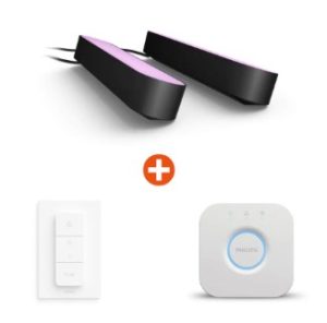 2x Philips Hue Play Lightbar inkl. Netzteil, Bridge & Dimmschalter V2 für 109€