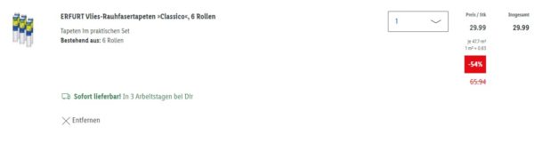 Bei Lidl bekommt ihr gerade 6 Rollen ERFURT Vlies-Rauhfasertapeten Classico für 34,94€ (Vergleichspreis ~47€) Ersparnis ~12€