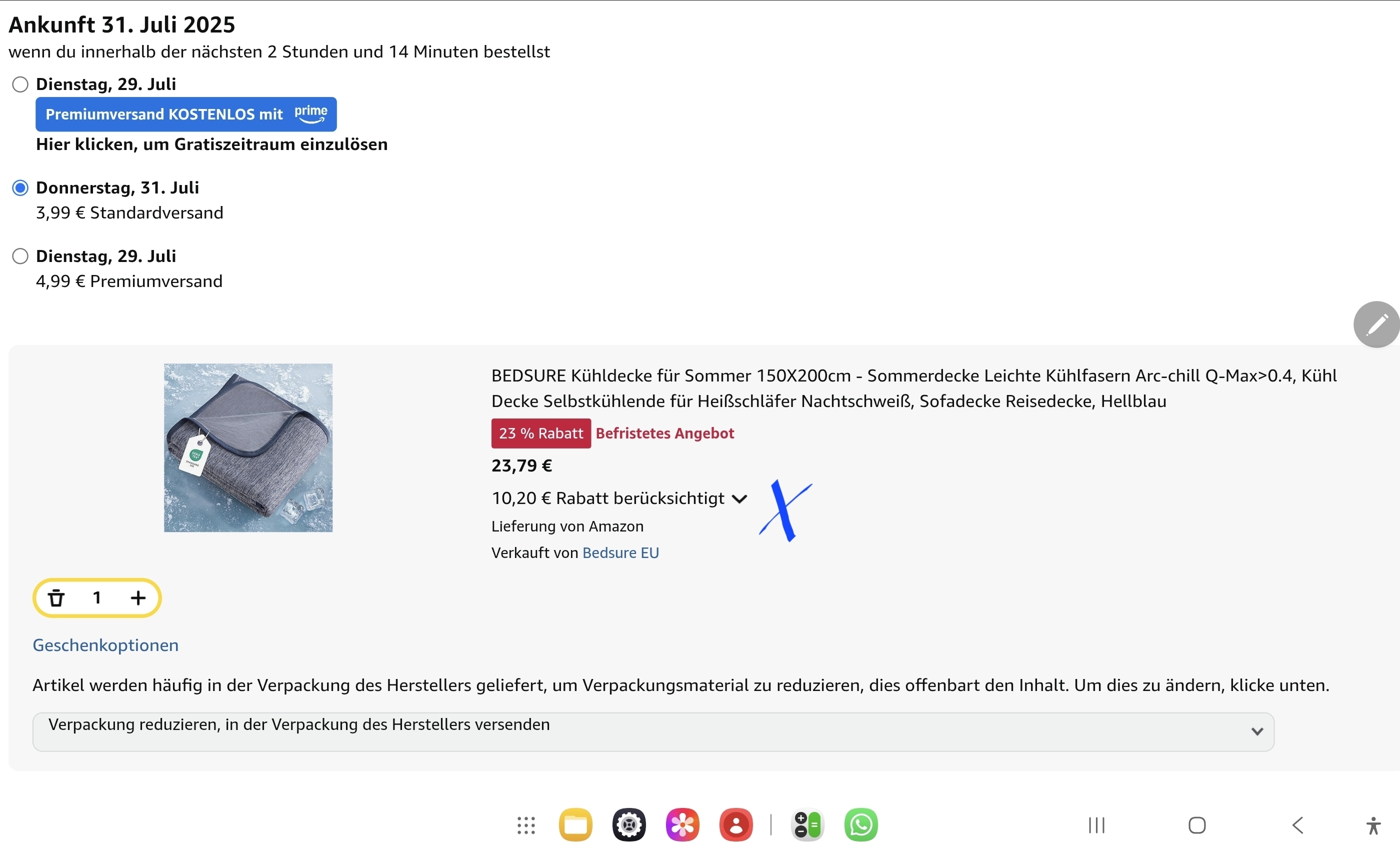 dasSams 27.07.2025, 21:45 #die 150 x 200 cm ist auch im Angebot -10€= 23.79€