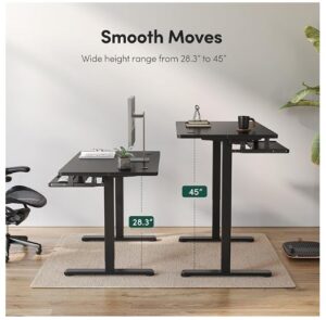 - Elektrisches Hebesystem: Motorisierter Hebemechanismus bietet glattere Höhenverstellung, dieser Schreibtisch verfügt über 3 voreingestellte Tasten, damit Sie Ihre gewünschte Höhe von 69cm bis 117cm mit einer Geschwindigkeit von 2cm/Sekunde mit geringem Lärm (unter 50dB) während der Arbeit einstellen können.