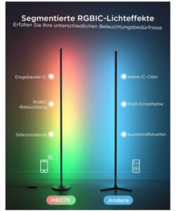 - Dynamische RGBIC Farbe: Entfesseln Sie Ihre Kreativität mit der Govee RGBIC-Technologie und sie können jedes Segment farblich an Natur, Festival und Emotionen anpassen. Unserer Stehlampe wohnzimmer zeigen gleichzeitig animierte Mehrfarbeneffekte, weihnachten deko.