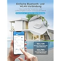 - Einfache Überwachung: Mit der App und einer stabilen WLAN- oder Bluetooth-Verbindung überwacht dieses Thermo-Hygrometer die innen temperatur und Luftfeuchtigkeit in Echtzeit und reagiert entsprechend. Unterstützt nur WLAN-Verbindungen mit einer Reichweite von 50 m und Bluetooth-Verbindungen mit einer Reichweite von 30 m. (Nur 2,4-GHz-WLAN)