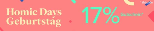 Gutscheincode: PARTY-17 | Wendet diesen Gutscheincode im Warenkorb an und erhaltet den Rabatt.