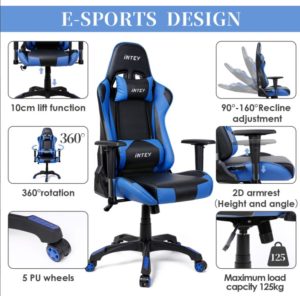 INTEY Gaming Stuhl ZD-01, 160º verstellbare Rückenlehne , bis 125 kg für 89,99€