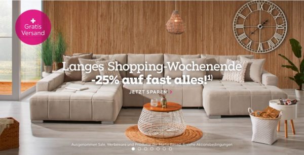 Mömax gewährt dieses Wochenende 25% Rabatt auf fast alle nicht reduzierten Artikel im Shop.