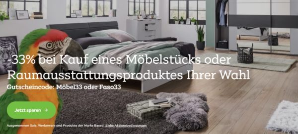 Um auch den Rabatt zu erhalten, müsst ihr den Gutschein Faso33 bzw. Möbel33 verwenden.