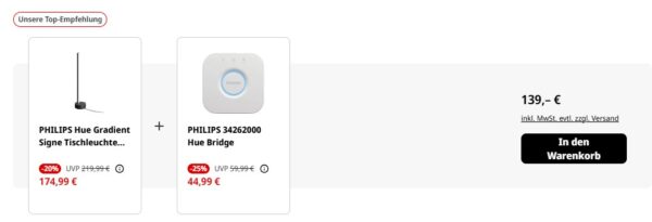 PHILIPS Hue Gradient Signe Tischleuchte + Hue Bridge für 139€