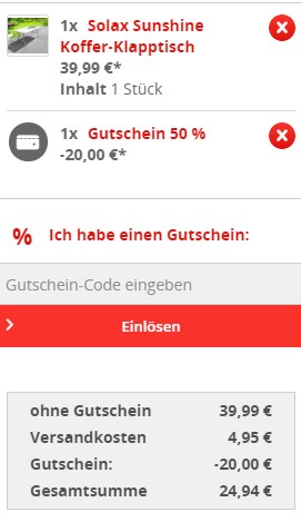 Im Onlineshop von Norma bekommt ihr nun zum Wochenende den Solax Sunshine Koffer-Klapptisch (181 x 74 x 73 cm) für 24,94€ (Vergleichspreis ~40€) Ersparnis ~15€