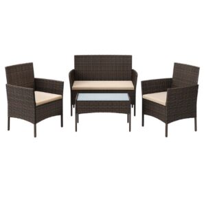 - Stilvolles Outdoor-Leben: Der schlichte Look und die massiven Metallbeine betonen den modernen Charme dieses Gartenmöbelsets. Die PE-Rattan-Oberfläche verleiht Ihrem Sommergarten eine einladende Note