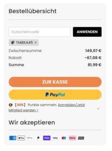 Nutzt den Gutschein TMBKA45 und schon kommt ihr auf den genannten Preis.