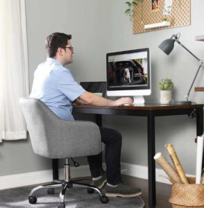 - DAS WICHTIGSTE AN EINEM STUHL? Natürlich Komfort! Lehne und Sitz dieses Bürosessels sind daher gut gepolstert und der weiche Bezug aus atmungsaktivem Leinenimitat sorgt für zusätzlichen Komfort. Stellen Sie zudem die Sitzhöhe ein und entlasten Sie Arme und Schultern auf den praktischen Armlehnen
