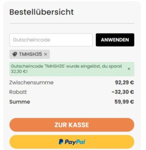 Nutzt den Gutschein TMHSH35 und schon kommt ihr auf den Preis.