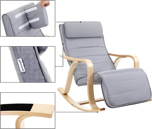 - WIE AUF SANFTEN WELLEN: Setzen Sie sich auf diesen geschwungen geformten Schaukelstuhl, stellen Sie die Fußstütze auf die gewünschte Höhe ein (5-fach verstellbar), schließen Sie Ihre Augen und entspannen Sie Körper sowie Seele beim Hin- und Herschaukeln