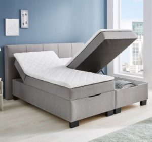 - Basisgestell mit Taschenfederkern-Polsterung, integriertem Topper und Stauraum inklusive Füße aus Kunststoff