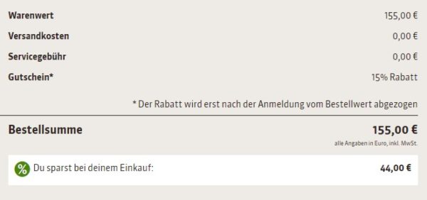 für 131,75€ (regulärer Preis: ~155€) Ersparnis ~23€