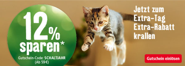 Bei Fressnapf gibt es anlässlich des Schaltjahrs nur heute 12% Extra-Rabatt (ab 59€ Bestellwert).