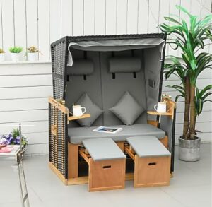 Outsunny Strandkorb mit Dach und Getränkehalter 118 x 79 x 150 cm für 265,87€