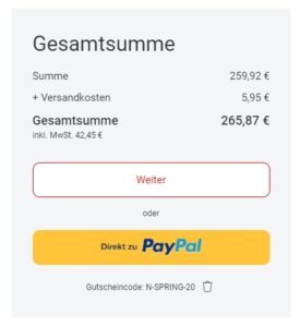 Nutzt den Gutschein N-SPRING-20 und schon kommt ihr auf den genannten Preis.
