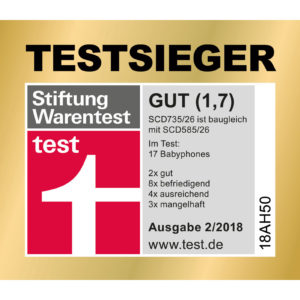 Dieses Babyphone wurde von Stiftung Warentest als Testsieger mit der Note „gut“ (1,7) bewertet. Ein vergleichbares, annähernd baugleiches, Modell von Philips erhält von den Amazon Kunden sehr gute