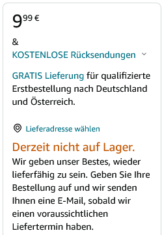Beachtet hierbei, dass die Lieferung nicht sofort erfolgt, da derzeit nicht auf Lager.