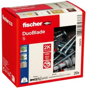 - Lieferumfang: 20 x DuoBlade S + 20 x Spanplattenschraube 4,5 x 40 (Art.-Nr. 545678) von fischer