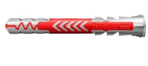 - Ein Dübel für alle Baustoffe: Als intelligenter 2-Komponenten-Dübel ist er mit Schrauben Ø 4,5 – 6 mm verwendbar und bietet sehr gute Haltewerte – die graue Komponente aktiviert je nach Baustoff automatisch das optimale Funktionsprinzip, während die Expansionsflügel der roten Komponente die sichere Verspreizung unterstützen