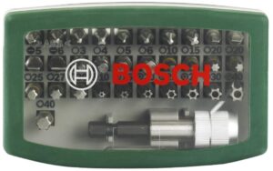 - Das 32tlg. Schrauberbit-Set von Bosch – mit Außensechskantschaft der Größe 1/4-Zoll für allgemeine Schraubarbeiten mit Schraubendrehern und Bohrschraubern bestens geeignet