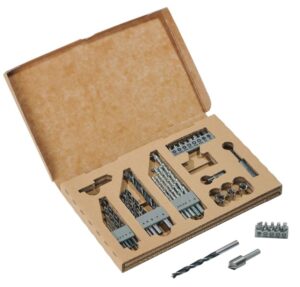- Lieferumfang: Metallbohrer (Ø 22345 mm), Holzbohrer (Ø 45678 mm), Steinbohrer (Ø 55,5678 mm), 3x PH (123), 3x PZ(123), 3x S (467), 4x T (15202530), Universalbithalter, Kegelsenker, 3x Steckschlüssel (7810 mm)