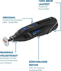 - LÄNGERE BETRIEBSZEIT: Der 12V 3-Ah Akku bietet eine 2-mal längere Lebensdauer und 100 Prozent mehr Betriebszeit im Vergleich zum Dremel 8221