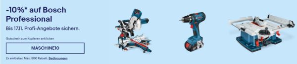 Bei ebay ist gerade eine neue Aktion gestartet bei der ihr 10% Rabatt auf Bosch Artikel bekommt