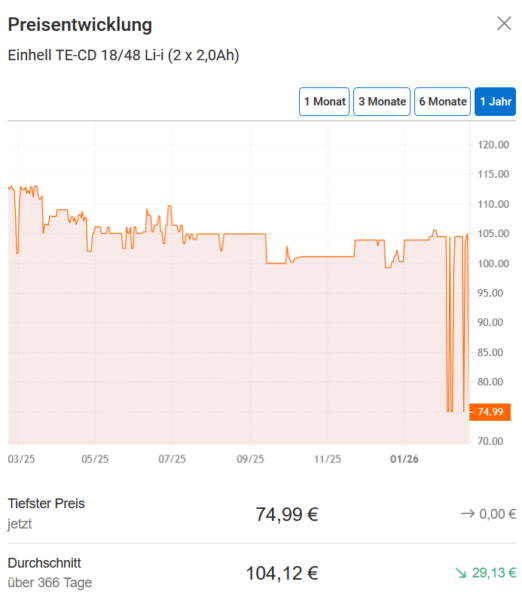 Bei Amazon gibt es den Einhell Akku-Schlagbohrschrauber TE-CD 18/48 Li-i Kit für 74,99€. (Vergleichspreis: 94€) Ersparnis: 19€
