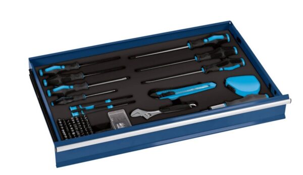 Entdecken Sie den Einhell Werkstattwagen BT-WW 180 Kit! Sichere Aufbewahrung dank 4 Schubladen (70 mm) mit Interlock-System. Großes Ablagefach mit Klapptür für zusätzlichen Stauraum. Maximale Belastbarkeit von 75 kg für robuste Konstruktion. Inklusive 180-teiligem Zubehörset für vielseitige Anwendungen.
