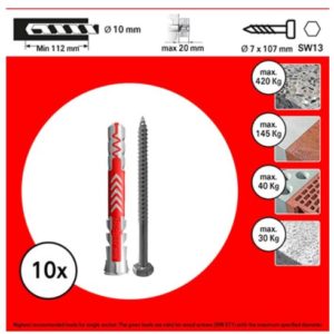 - Baustoffe: Verwendbar mit Schrauben 8 x 80 mm in zahlreichen Baustoffen, z.B. Beton, Voll- oder Lochziegeln, Porenbeton und Plattenbaustoffen aus Gipskarton, Naturstein