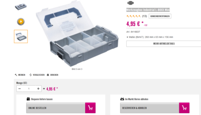 Tayfun 21.01.2021, 05:07 #Wer auf der Suche nach Mini L Boxxen ist, gibt es bei Hornbach bei abholung INDUSTRIAL L-BOXX Mini für 4,95€ in Grau, Schwarz, Transparent!