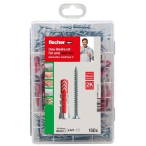 - Lieferumfang: 1 x MEISTER-BOX DUOPOWER + Schraube (Art.-Nr. 535972), Dübelset mit 160 DUOPOWER (DP) Dübeln und passenden Schrauben (50 Stk. DP 6 x 30, 50 Stk. Schrauben SZ 4,5 x 40, 30 Stk. DP 8 x 40, 30 Stk. Schrauben SZ 5 x 60) von fischer