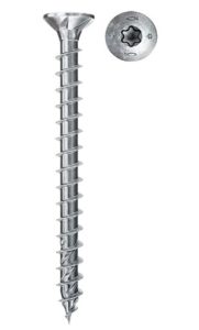 - Bündig verschraubt: Die Spanplattenschraube mit Hochleistungswachsbeschichtung und Vollgewinde für eine optimale Kraftübertragung ermöglicht eine oberflächenbündige Montage in Holzbaustoffen, bestens geeignet für randnahes Verschrauben