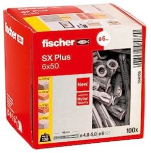 - 1 x Faltschachtel Spreizdübel SX Plus (Art.-Nr. 568106), Karton mit 100 Nylon-Dübeln (100 Stk. 6 x 50) von fischer