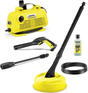 - Für gelegentliche Einsätze: Der Kärcher K 2 Premium Horizontal VPS Home beseitigt mit max. 110 bar Druck leichte Verschmutzungen von Fahrrädern, Gartenwerkzeugen, Outdoormöbeln und kleineren Flächen