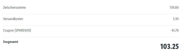 Nutzt den Gutschein SPAREN30 und schon kommt ihr auf den genannten Preis.