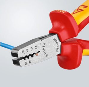 - Zum Verpressen von Aderendhülsen DIN 46228 Teil 1 + 4 im Bereich von 0,25 bis 2,5 mm²