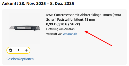 Bei Amazon gibt es das KWB Cuttermesser mit Abbrechklinge 18mm für 0,99€. (Vergleichspreis: ~1,99€) Ersparnis: ~1€