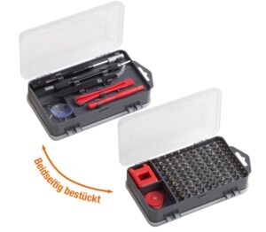 - 108 Teile für verschiedenste Einsätze | Doppelseitig bestückte Kunststoffbox | Kompakte Größe ist leicht zu verstauen
