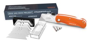 Bei Amazon bekommt ihr für unbestimmte Zeit das Presch Teppichmesser Profi – Faltbares Cuttermesser Metall Extra Scharf mit 10 Ersatzklingen für 9,99€ (Vergleichspreis ~18€) Ersparnis ~8€
