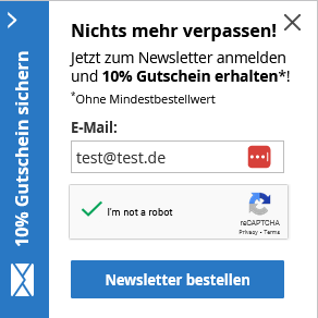 Zusätzlich gibt es noch 10% Rabatt wenn ihr euch für den Newsletter anmeldet, einen entsprechendes Formular findet ihr rechts in der Sidebar zum Ausklappen: